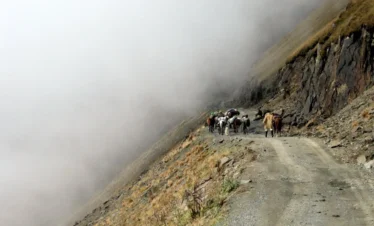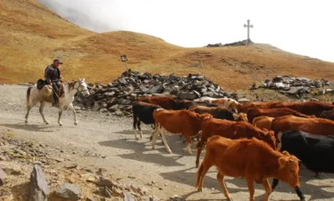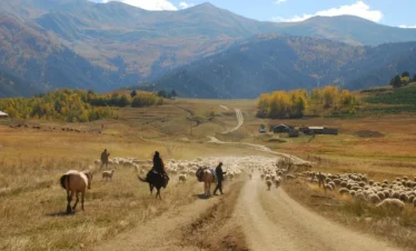 The cattle drive of Tusheti is one of the last great transhumances of the Caucasus. Every autumn, Tushetian shepherds move their herds — sheep, cattle, horses, dogs — from the high mountain pastures down to the winter lowlands of Kakheti. We join them for four days on foot.