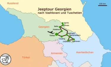A 4x4 jeep tour in which we travel the most beautiful regions of the Caucasus in eastern Georgia (in Asia) with off-road vehicles. You sit at the wheel yourself and optionally take turns with your friends.