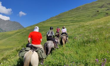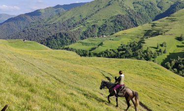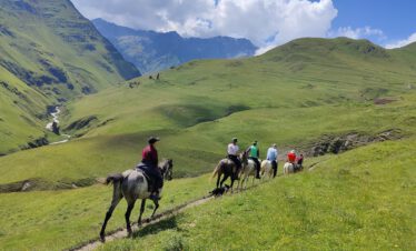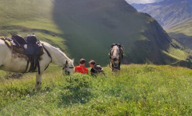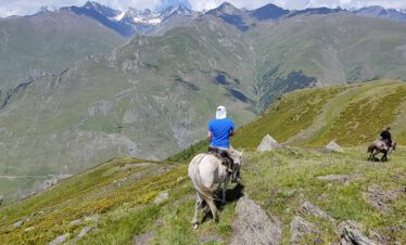 A horseback riding trip for advanced riders of 5 riding days in the beautiful mountains of Tusheti in Georgia